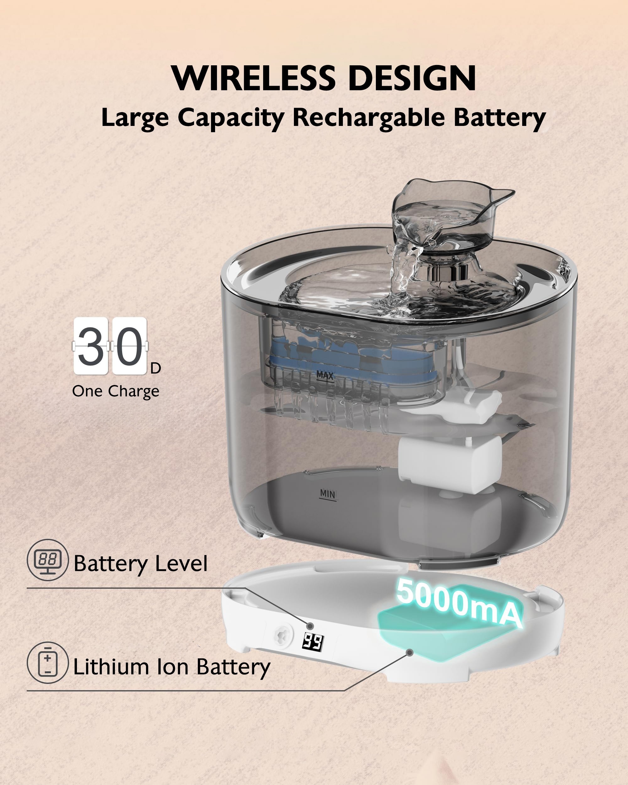 Wireless Cat Water Fountain For Drinking, Battery Operated 74.39oz Auto Cat Drinking Dispenser With Motion Sensor For Indoor Cats